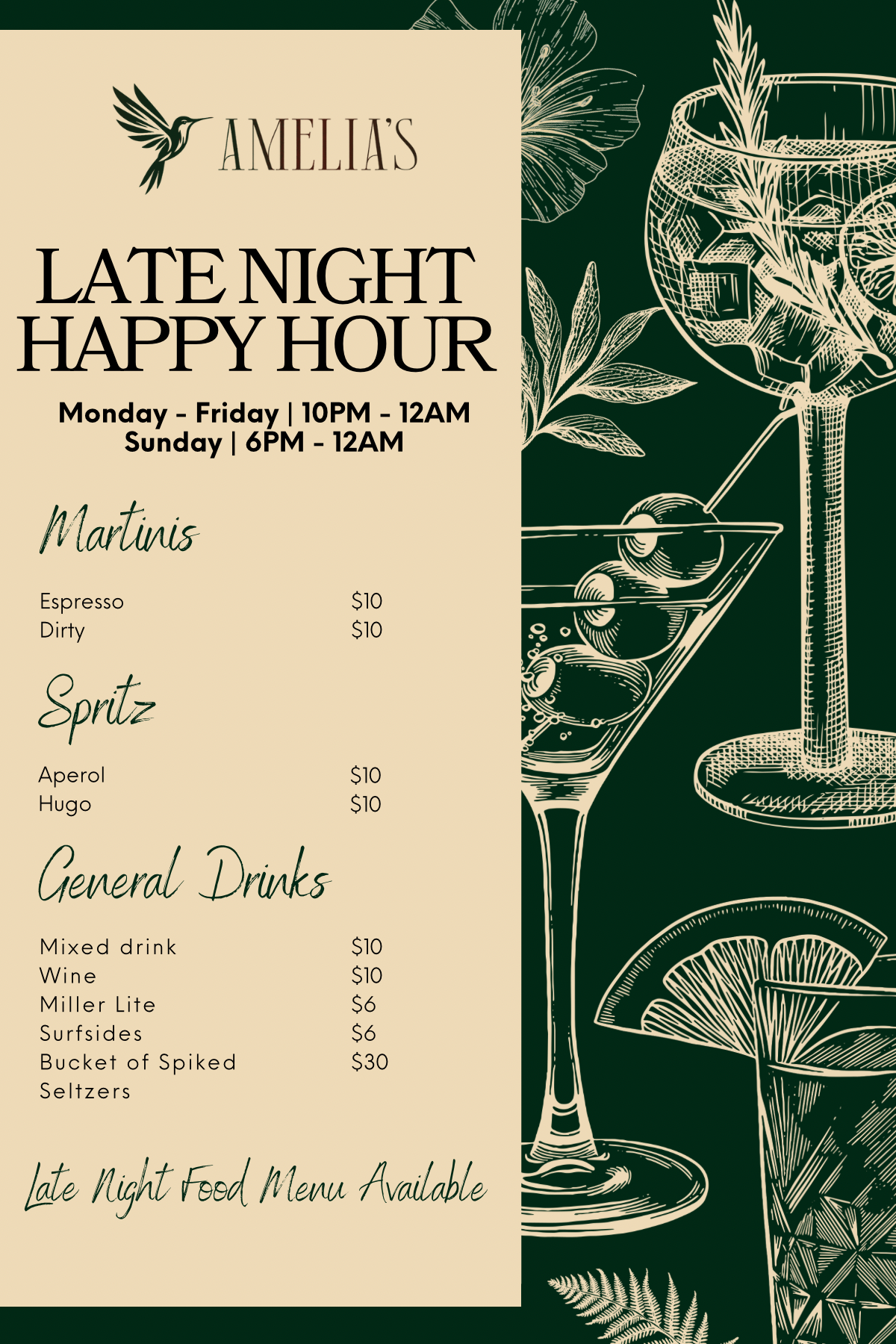 - LATE NIGHT HAPPY HOUR